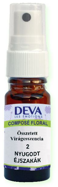 Kamilla (Matricaria recutita), Levendula (Lavendula officinalis), Vadgesztenye rügye (Aesculus hippocastanum), Orbáncfû (Hypericum perforatum), Golgotavirág (Passiflora incarnata), Hársfa (Tilia platyphyllos) és Macskagyökér (Valeriana officinalis) virágesszenciát tartalmaz. A termék tartósítószerként alkoholt tartalmaz!